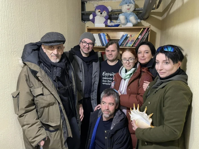 Команда PEN Ukraine в одному з укриттів Херсона. Фото з фейсбук-сторінки Мирослави Барчук