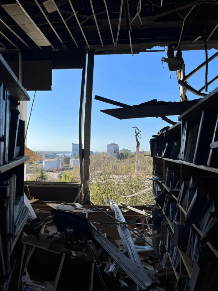 Наслідки обстрілу бібліотеки. Фото з фейсбук-сторінки ГО «Сяйво безмежної мрії»