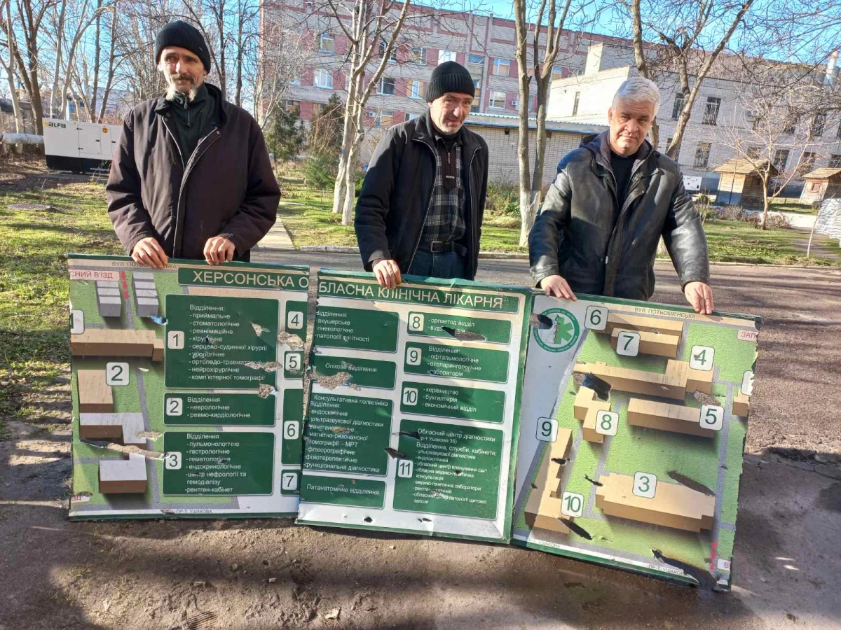 Пошкоджений внаслідок російського обстрілу план лікарні. Фото: Світлана Думинська