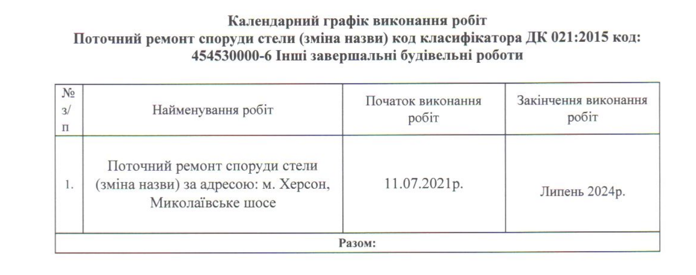 Зокрема, там є конкретний календарний графік робіт – липень 2024 року.
