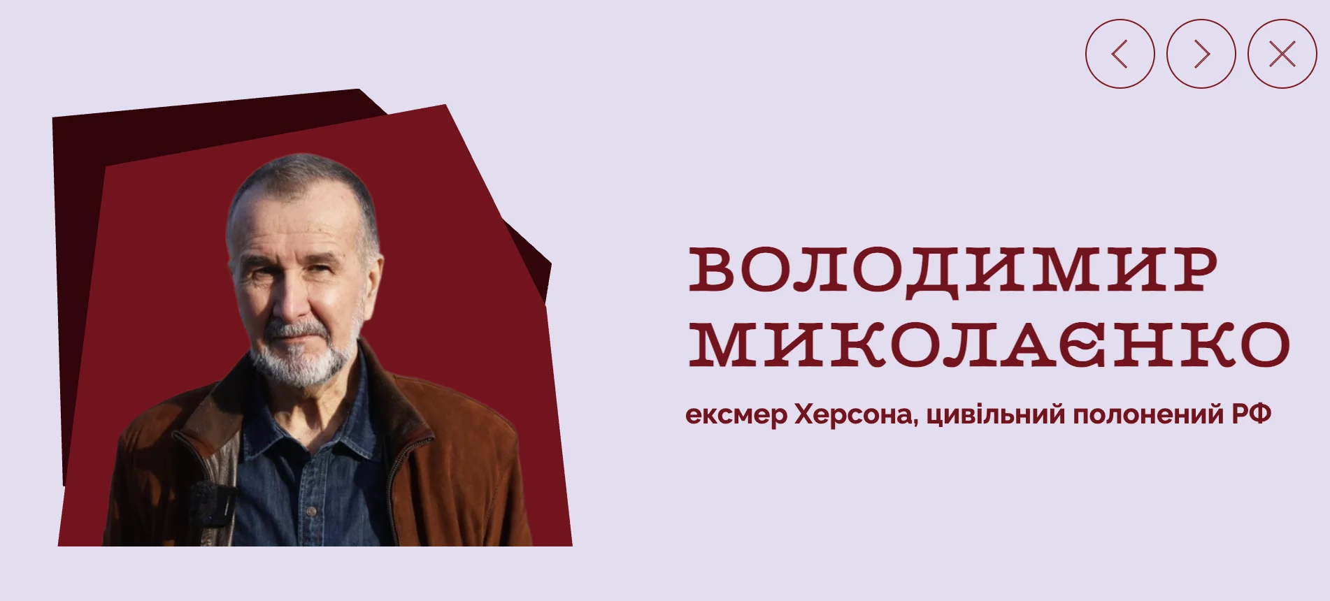 - Колишній міський голова Херсона Володимир Миколаєнко, який пройшов три роки російського полону.