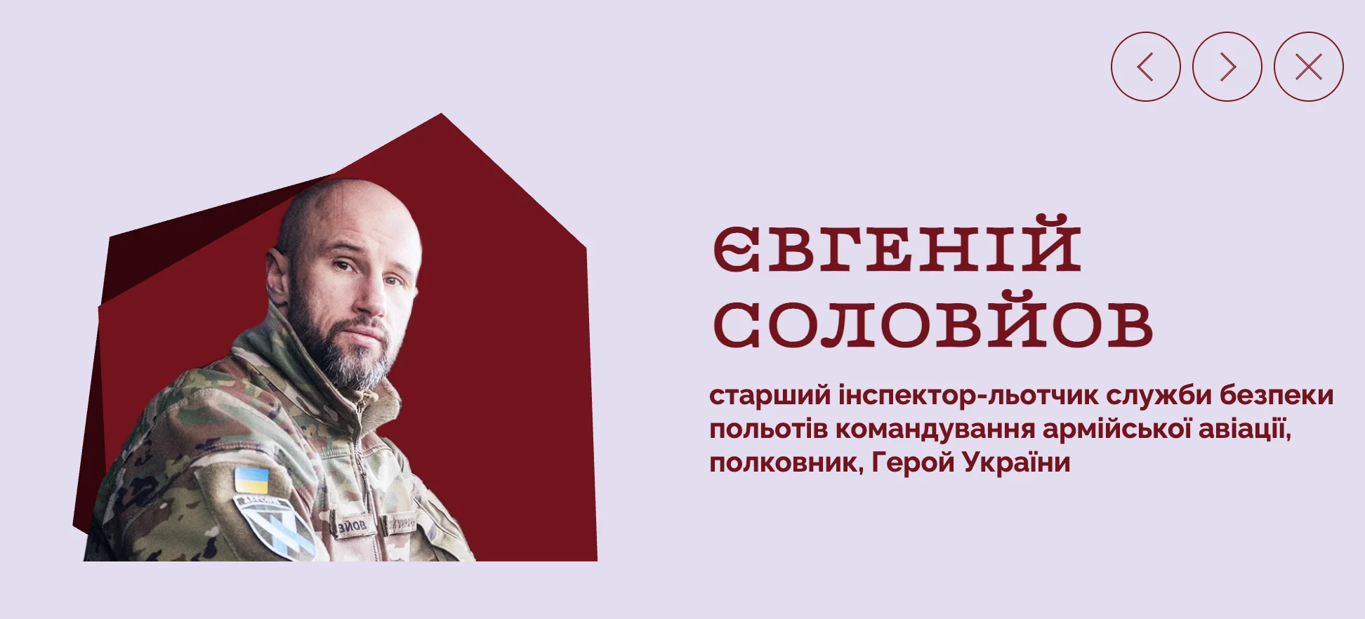Так, представником Херсонщини у категорії Захисники став старший інспектор-льотчик служби безпеки польотів командування армійської авіації, полковник та Герой України Євгеній Соловйов з Чорнобаївки.