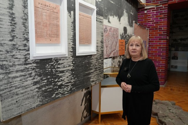 Керівниця краєзнавчого музею Ольга Гончарова розповіла, що музейники почали формувати експозицію часів українських визвольних змагань 1992 року. За радянських часів українська історія була викривлена. 2022 року під час окупації Херсона російські військові викрали зброю, нагороди, частину експозиції зруйнували."Росіяни, як тільки увійшли в Херсон, зайшли в музей. Вони відразу ж почали завозити свої підручники, свої книги. Українські підручники, українські книги почали знищувати. знищували історію нашу, знищували історію саме в нашому музеї. І ми бачимо оці сліди того, що відбувалось в нашому музеї", — говорить в. о. директорки обласного краєзнавчого музею Ольга Гончарова.