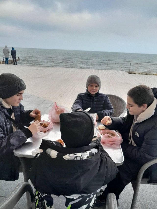 А після відвідування дельфінарію для маленьких гостей організували смачний обід на березі Чорного моря завдяки підтримці ТОВ «ВАРІОН».