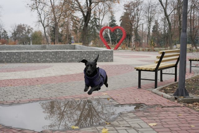 "Другий рік він з нами. Це пес, який приймає людей дуже добре. З тваринами — не дуже, з людьми — навпаки. Він з нами всюди їздить, мандрує завжди. В лікарню ми з собачкою, на пошту з собачкою, волонтерку розвантажувати з собачкою. Він поки сам не може — боїться. В машині більш-менш сидить сам, а у квартирі — ні", — говорить Наталія.