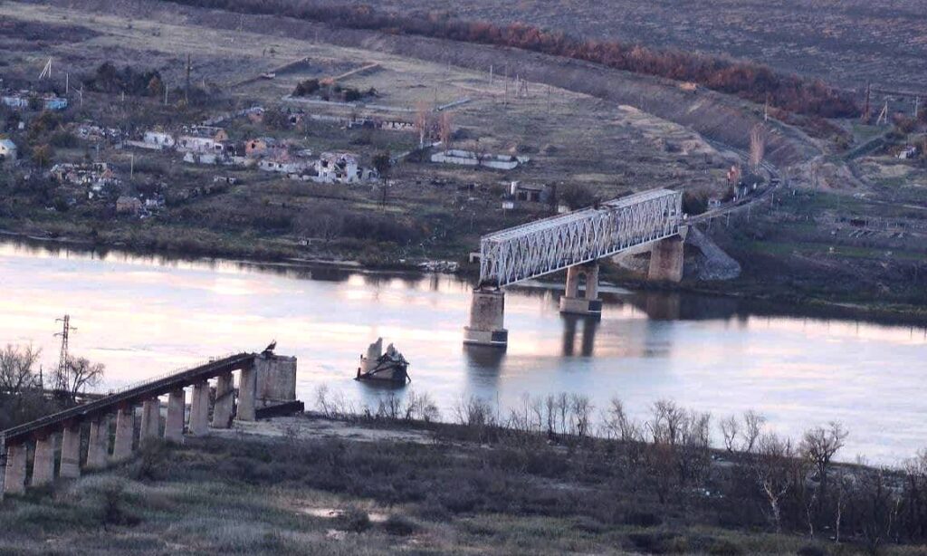 Антонівський залізничний міст, орієнтовно початок 2024 р. Фото: телеграм-канал/Херсон: Non Fake