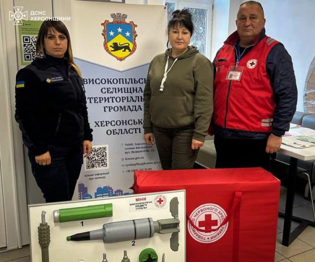 За ініціативи Головного управління ДСНС України у Херсонській області та сприяння Херсонської обласної організації Товариства Червоного Хреста України, організовано надання 3-Д стендів «Вибухонебезпечні предмети» громадам Херсонської області, які використовуватимуться для навчання підростаючого покоління в Класах безпеки загальноосвітніх закладах області.«Обізнаність дітей сьогодні - це гарантія їхньої безпеки в майбутньому.