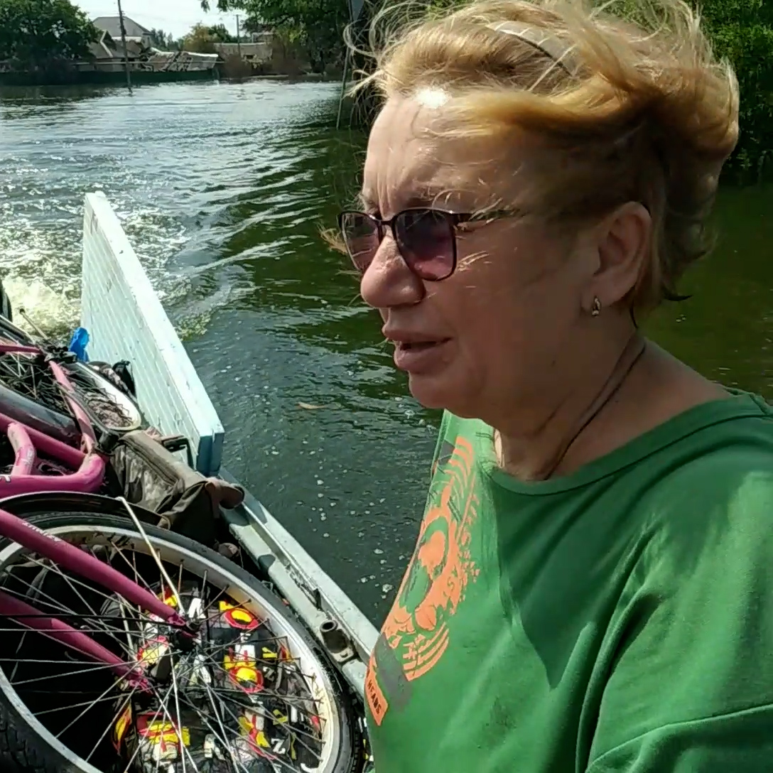 “А з квітня 2022 року, коли вже проїжджати через усі перепони на шляху було неможливо, а потім стався і підрив Антонівського мосту, я залишилась з чоловіком у Голій Пристані. Були там майже… Майже рік кожен день чекали, що ось-ось-ось-ось буде звільнення”.