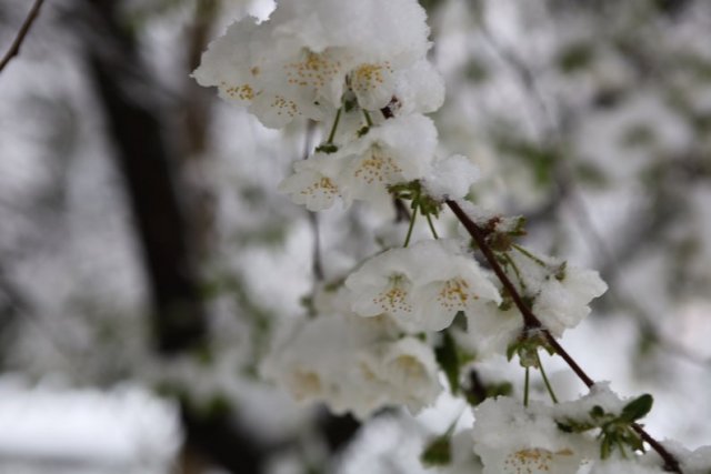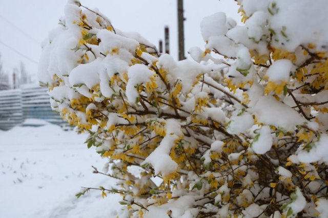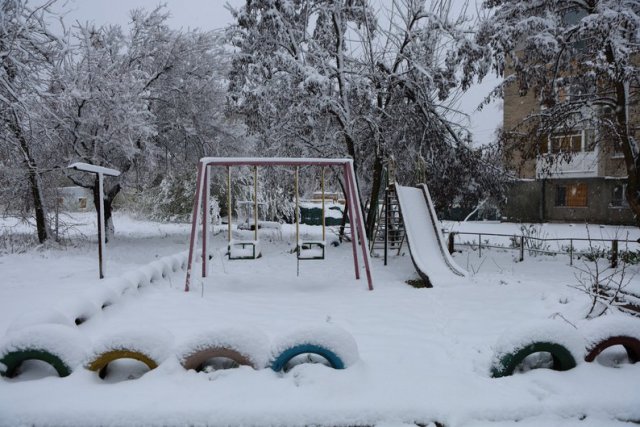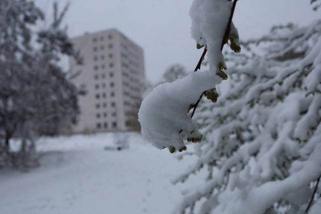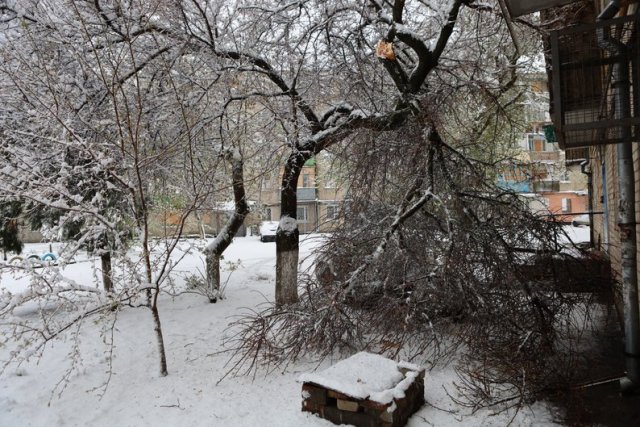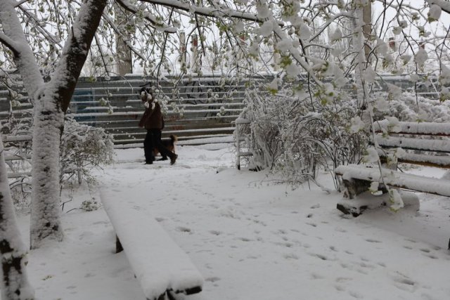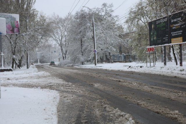 В ніч проти 11 квітня Херсон засипало снігом — обліпило дерева, кущі, будинки. На дорогах утворилась ожеледиця. Рух транспорту був ускладнений. Тому людей попросили без нагоди не пересуватись містом — ні пішки, ні на авто. В МВА повідомили, що задіяли усі можливі сили, щоб оперативно подолати наслідки квітневої негоди.