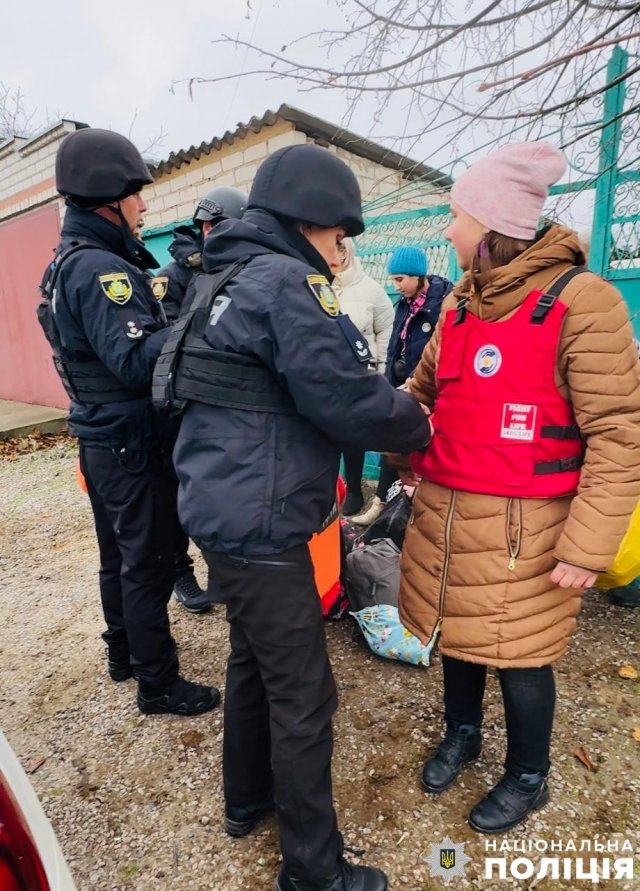 Тож сьогодні поліцейські відділу поліції № 2 (Корабельний) спільно з колегами із відділення поліції № 2 (Олешківський) Херсонського районного управління евакуювали родину з цього небезпечного населеного пункту.