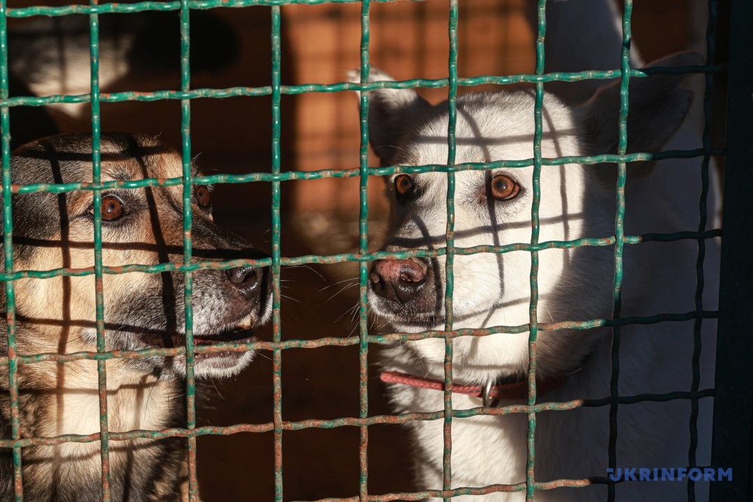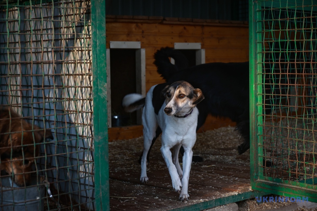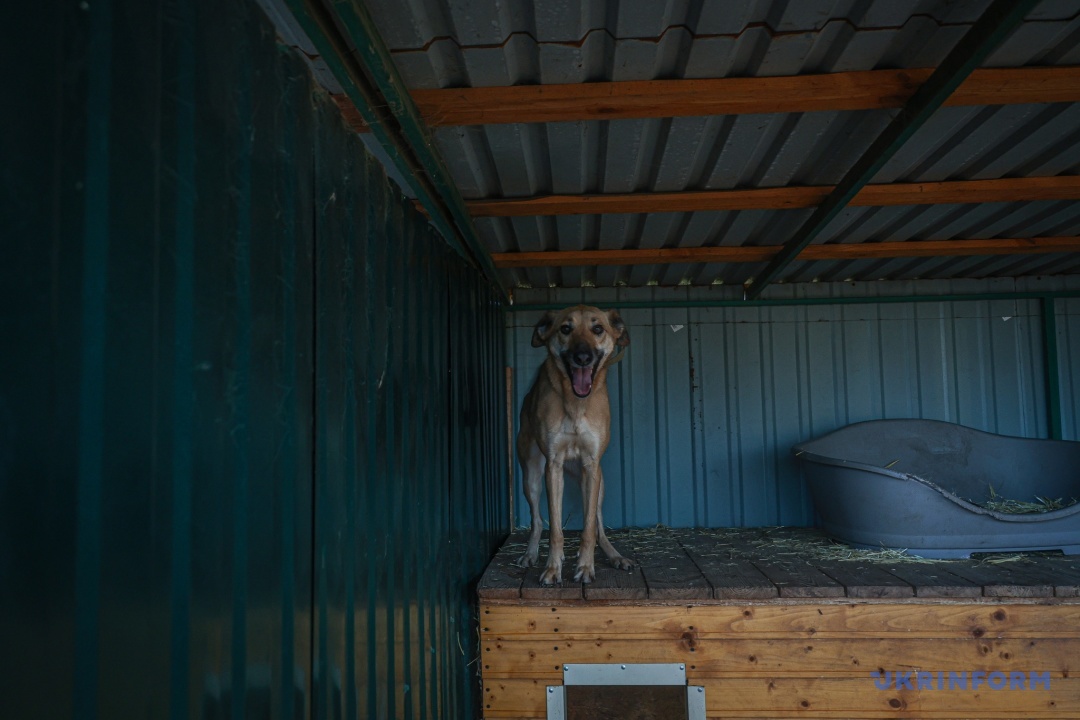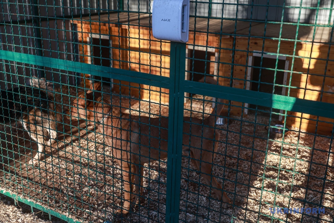 СОБАКИ ПАНІЧНО БОЯТЬСЯ ВИБУХІВУ центрі адопції нині є вода, світло, технічний будиночок і своєрідний «лабіринт» із огорожі, щоб під час вигулу не перетнулися тварини, які не товаришують між собою. Є навіть камери спостереження та сигналізація.