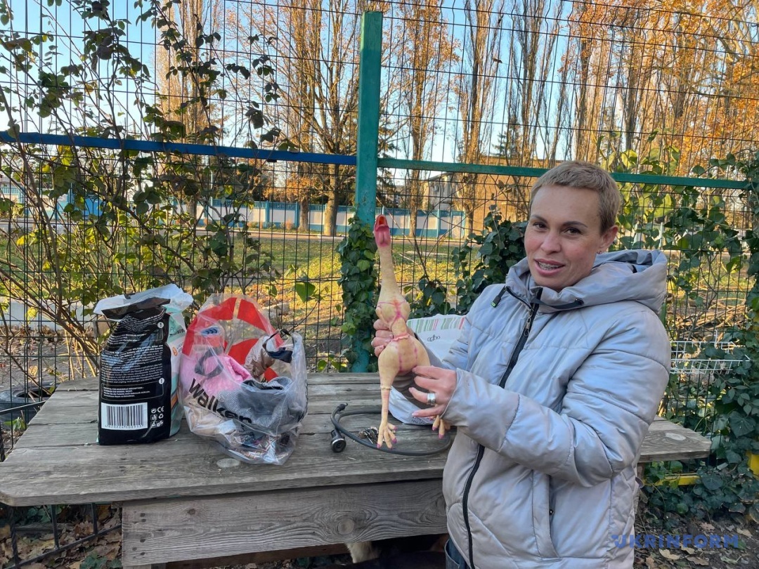 Під час нашої розмови до центру зайшов чоловік: він приніс дві торбинки іграшок для тварин, корм, повідець та пелюшки для цуценят. Яна каже, що люди часто приносять до притулку речі, якими їхні чотирилапі вже не граються, або якщо тварина померла. Розмовляти добродій відмовився, лише сумно усміхнувся.