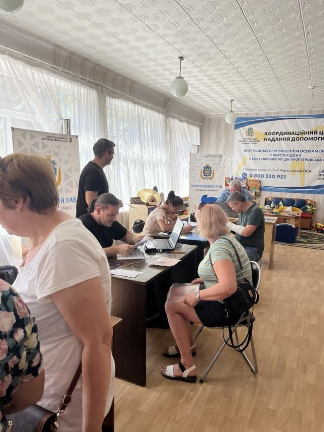 Більше 240 родин, які знайшли прихисток у Кривому Розі, отримали понад 650 індивідуальних гігієнічних наборів.Про це повідомляє пресслужба ХОВА.Крім того, тимчасово переміщеним громадянам надали необхідну медичну допомогу. Сімейна лікарка обстежила понад 30 пацієнтів.Водночас представники Херсонського обласного центру зайнятості надали людям консультації з питань працевлаштування.Спеціалісти гуманітарного офісу продовжують працювати для підтримки херсонців, які були вимушені покинути рідні домівки через війну.