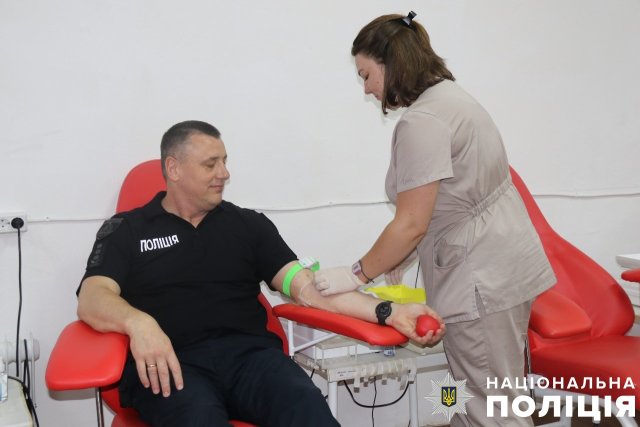 Анатолій Михальчук 25 років служить у поліції та нині очолює центр забезпечення ГУНП в Херсонській області. Він згадує, що вперше став донором у далекому 1996 році під час служби в армії у Сімферополі, тоді кров терміново знадобилася онкохворій дитині. Анатолій має рідкісну групу – 4 негативну – і з того часу він здав понад 19 літрів крові.