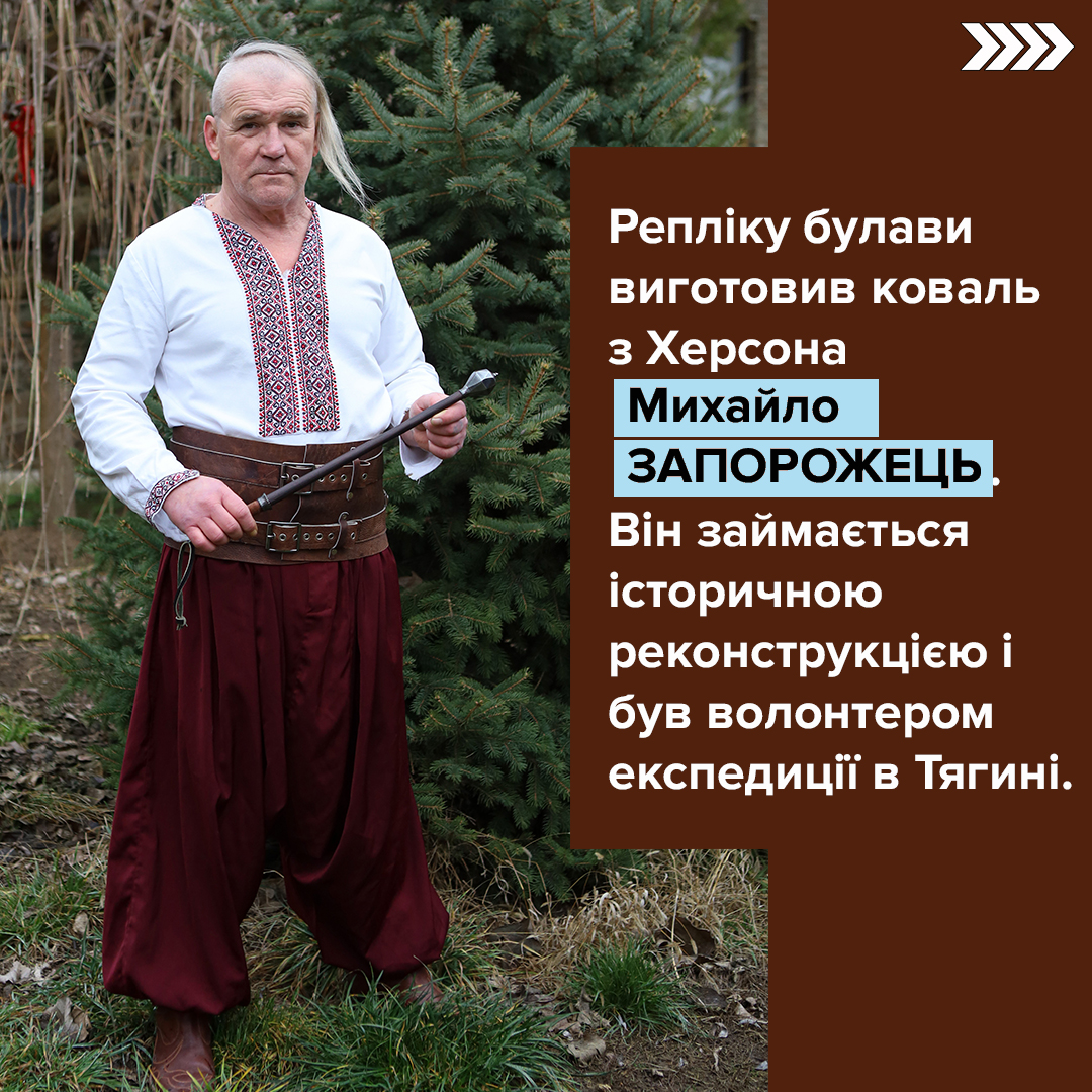 Як зазначається, знайдена під час експедицій булава погано збереглася в ґрунті через його особливості. Ідея створити репліку (точну копію - ред.) булави належить керівниці проєкту, в рамках якого з'явився віртуальний музей фортеці Тягинь, голові правління Херсонської міської громадської організації «Культурний центр Україна - Литва» Наталії Бімбірайте.