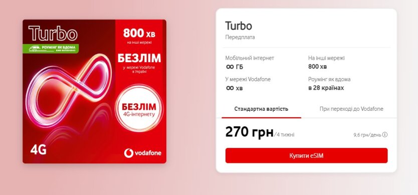 Vodafone також пропонує привабливі умови для абонентів, які готові перенести свій номер. Їх акційний тариф Turbo включає: