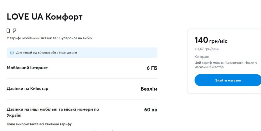 Київстар розробив соціально-орієнтований тариф "LOVE UA Комфорт", який враховує потреби літніх людей і людей з інвалідністю.
