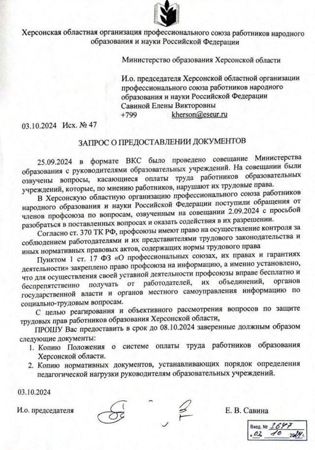 Особливо активні вчителі-колаборанти почали звертатись у «профспілку», яку невідомо для чого окупанти створили на Херсонщині (немов у когось там є якість права?), «профспілка» звернулась у «міністерство освіти» з запитом щодо надання документів про оплату праці педагогів і порядок визначення педагогічного навантаження.