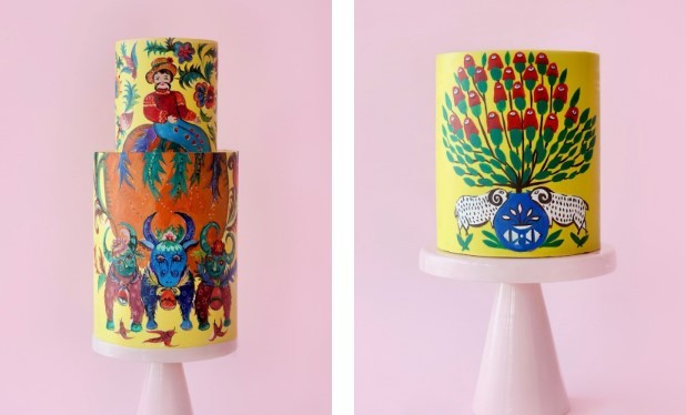 На її роботах – історії казкових звірів і традиції петриківського та київського розписів. Оригінальну картину, яку зобразили на торті, викрала армія РФ і наразі невідомо, де вона перебуває.