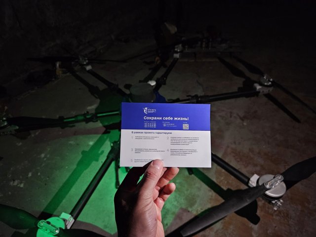 "З метою донесення правдивої інформації про байдуже відношення російського військово-політичного командування до власного особового складу та безцільності їх подальшої участі у збройній агресії РФ проти України, спецпідрозділами 124 ОБрТрО МП за ініціативи СБУ проведено спільні заходи із розповсюдження друкованих матеріалів вздовж ворожих позицій на ТОТ Херсонщини. Для цього використано листівки, на яких нанесено інструкцію та реквізити за допомогою яких ворог може скласти зброю та здатись у полон", — розповів речник 124 бригади територіальної оборони морської піхоти Артем Рудаков.Листівки скручують і закладають в артилерійський снаряд 122 калібру. Його заряджають в артустановку Д-30 і вистрілюють у напрямку лівобережжя Херсонщини. Такі ж "агітки" завантажують у кейс безпілотника типу "Кажан". На бойовому вильоті листівки скидають на позиції армії РФ.