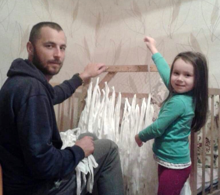 Донька Аня вже допомагає татусеві плести сітки