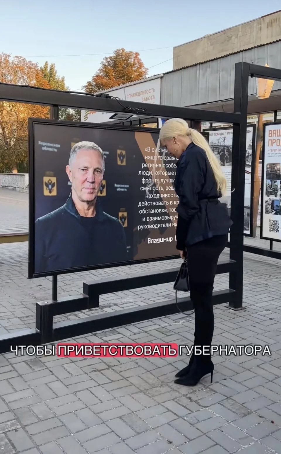 Фото: окупаційні медіаТоді про Катерину ще майже ніхто не знав, аж поки вона не завела Tik-Tok та не опублікувала відео, де розповіла як проходить її день.Найсмішнішим моментом у відео, який і привернув увагу до акаунта Катерини, став уклін портрету Сальдо. Блогерка показала, що перед тим, як поснідати кланяється так званому губернатору, чий плакат окупаційна влада повісила на одній з вулиць тимчасово окупованого Генічеська.