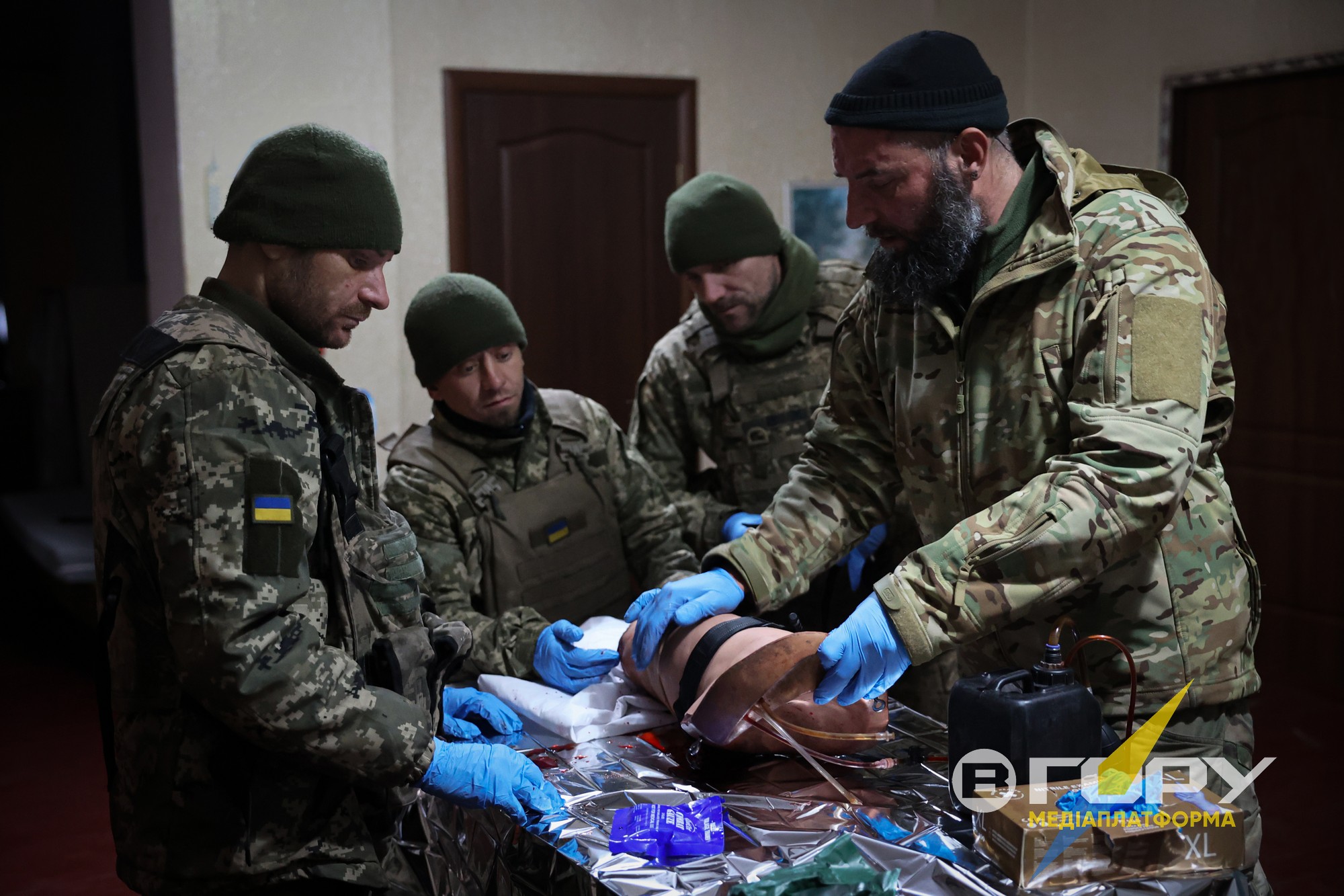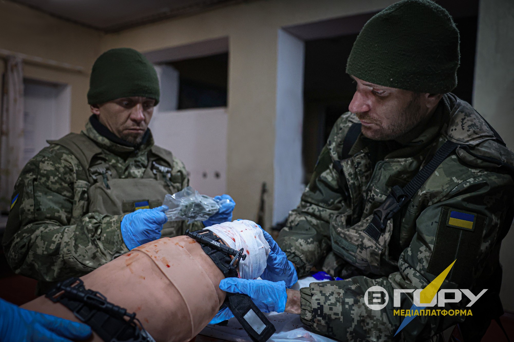 Смертельно небезпечна на цій війні втрата крові. Швидко допомогти собі та побратиму в разі поранення – мета постійних занять із тактичної медицини.
