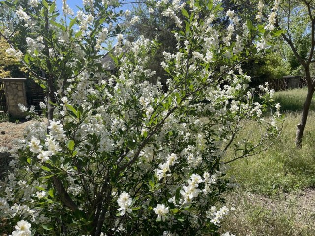 На музейному подвір’ї зацвіло декоративне дерево – екзохорда китицевидна. Рослина родом з Японії та Китаю. Витримує заморозки й добре почувається на півдні України. Це родич вишні та черешні, але має сухі плоди.