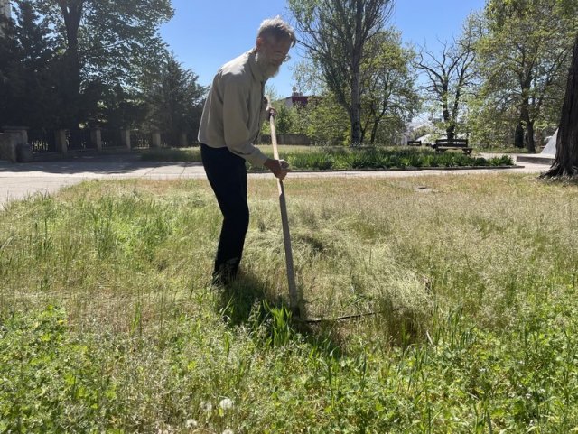 "Мигдаль відцвів. Є у нас у степу така рослина, одна з найбільш декоративних рослин в Україні. Це такий невеликий кущ. У степу ж дерева не ростуть, ми ж знаємо. Він весь вкривається квітами, дуже декоративними, але, на жаль, уже відцвів, ще б два-три тижні, пік цвітіння. Є ще рослина, я навіть не знаю, що це таке, я пересадив діляночку – такий невеликий шматочок дерновий степовий, там виявилась отака рослина. Поки вона не зацвіла, я навіть не можу визначити, що це таке", — розповідає Михайло.