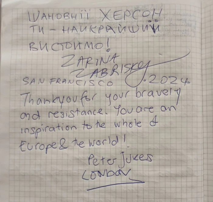 Журналісти, залучені у зніманні фільму, ознайомилися з виставковими проєктами краєзнавчого музею.Днями Херсон відвідали відомі американські журналісти Пітер Джукс та Заріна Забріскі – повідомляють на фейсбук-сторінці Херсонського обласного краєзнавчого музею.У Херсонській області їхня команда знімає фільм, присвяченого спротиву херсонців російській агресії.Завітавши до Херсонського обласного краєзнавчого музею, журналісти познайомилися з виставковими проєктами «Херсонщина незламна», «Херсон звідусіль», «Мовні вправи».