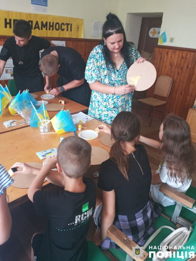 Також під час заходу правоохоронці провели з хлопчиками та дівчатками вікторину на знання української символіки та цікавий майстер-клас із виготовлення патріотичних годинників. Маленькі патріоти застосували усі свої творчі здібності та майстерність під час розфарбовування та прикрашання дорогих серцю синьо-жовтих годинників.