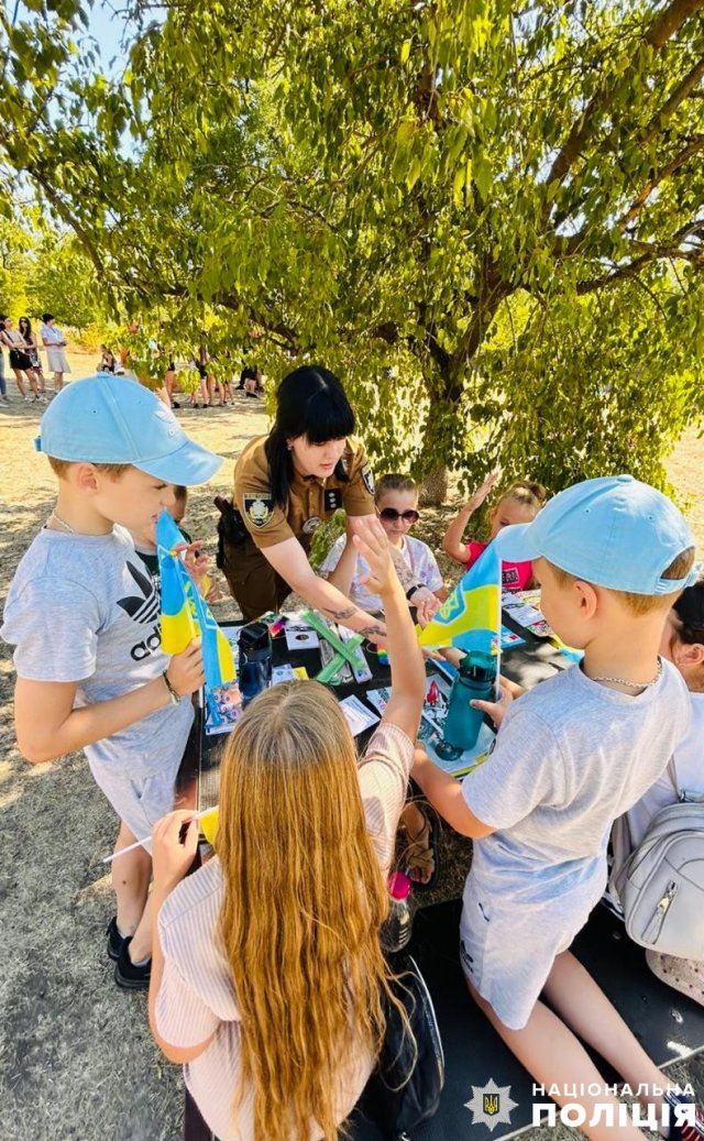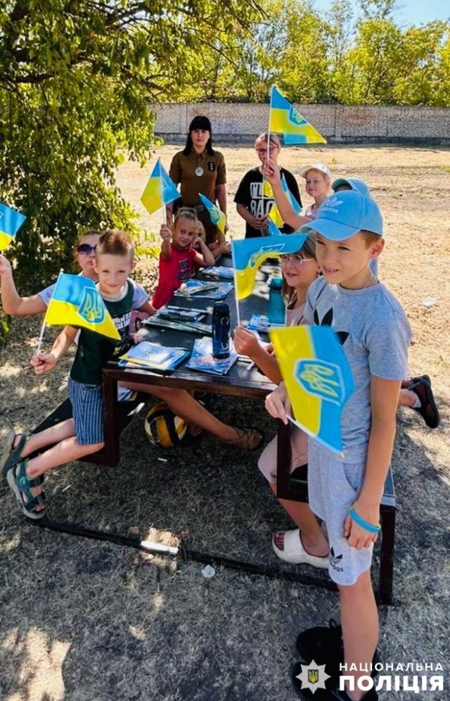 Малюкам пояснили, що нині для кожного українця синьо-жовтий стяг уособлює мужність, нескореність, боротьбу та волю до перемоги над російським ворогом. З прапором у руках українські воїни йшли у бій за кожен населений пункт правобережжя Херсонщини, а нині б’ються за звільнення лівобережжя, відстоюючи нашу незалежність, свободу і територіальну цілісність, наше сьогодення та майбутнє.На згадку про зустріч поліцейські подарували діткам маленькі прапорці та яскраві розмальовки на патріотичну тематику. Хлопчиків та дівчат закликали шанувати й берегти національні символи, ніколи не забувати, якою ціною нашим захисникам дається визволення України від російських загарбників.