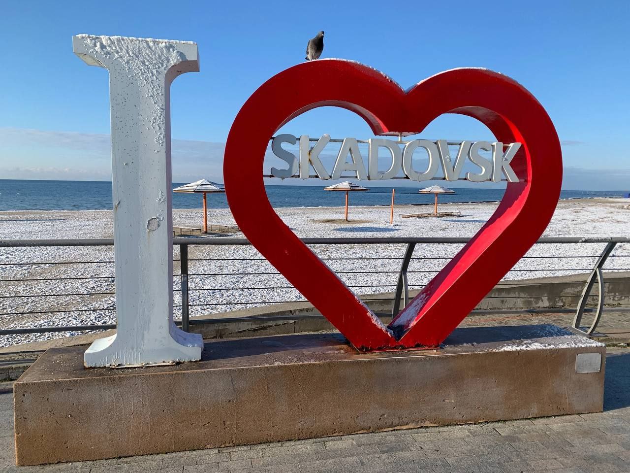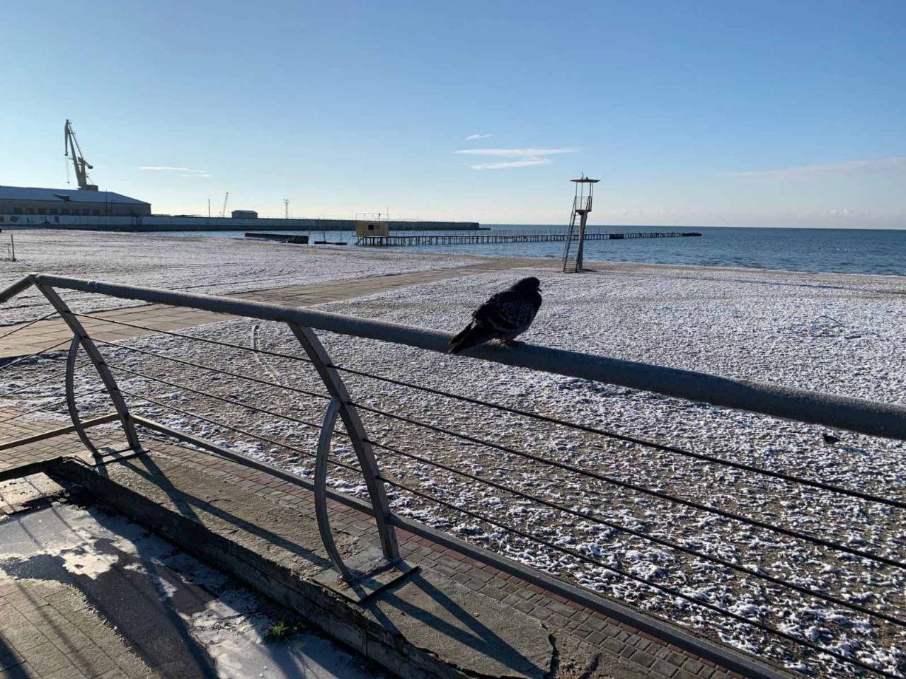 Трішки снігу сипнула зима і на центральний пляж в окупованому Скадовську.