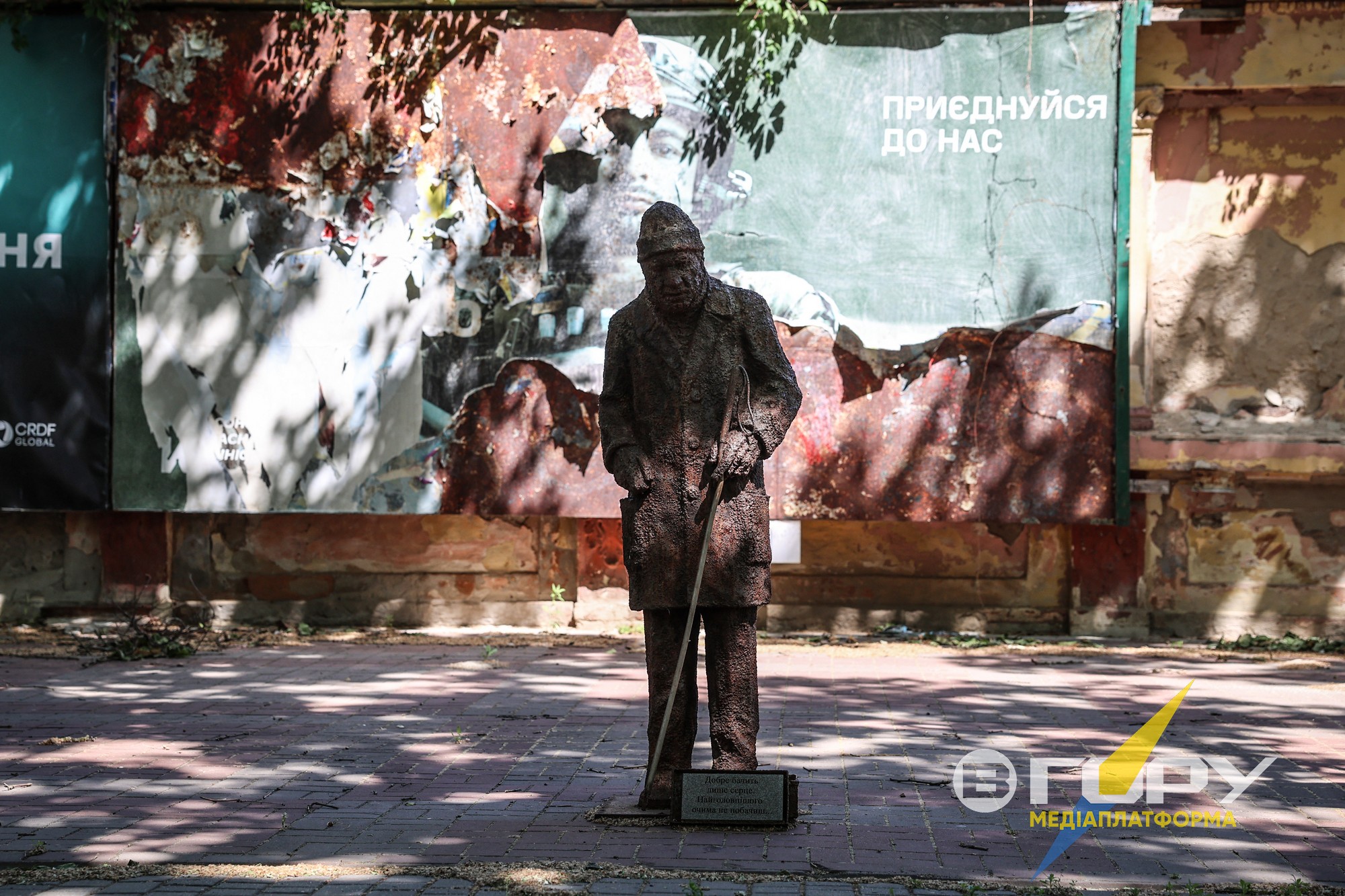 Художник Микола Гепард свого часу перетворив деревину на артоб'єкт. Сьогодні заклопотані поодинокі перехожі швидко пробігають повз нього, не удостоюючи поглядами.