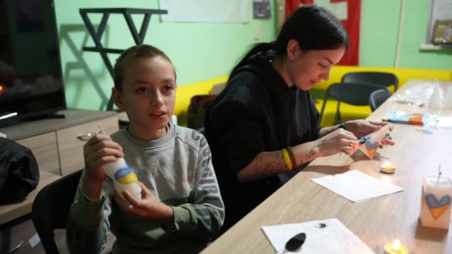 Діти, які прийшли на заняття, поділились своїми враженнями від участі у творчому заході."Я брав ложку, нагрівав її і робив кругові рухи. І все. І вийшла така гарна свічка", — сказав 9-річний Андрій Петюренко.