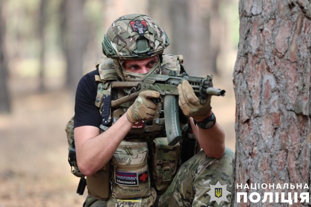 В умовах, максимально наближених до бойових, поліцейські тренуються щодня. Під керівництвом досвідчених інструкторів вони відточують свої знання та практичні навички з тактичної, вогневої, домедичної, фізичної, інженерної та вибухотехнічної підготовки. Вчаться будувати захисні споруди та штурмувати позиції ворога, велику увагу приділяють тактико-медичній підготовці, адже в бойових умовах це рятує життя як побратимів, так і самого бійця. Командир роти №1 батальйону поліції «Стрілецький» ГУНП в Херсонській області на псевдо «Прометей» зазначає, що його підрозділ оснащений усім необхідним для виконання поставлених завдань та готовий дати гідну відсіч ворогу. У них одна мета – вибити російських окупантів з української землі. І хоч нині триває процес навчання та підготовки, який довготривалий і безкінечний, та особовий склад уже готовий дати гідну відсіч ворогу та звільняти тимчасово окуповані території нашої держави.
