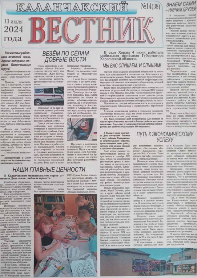 І якщо телевізор з російською пропагандою можна не дивитись, то від окупаційних «газет» жителям лівобережжя практично не сховатись. Вони постійно чекають на них у магазинах, «адміністраціях», а то і просто посеред вулиці. Розповсюджується друкована пропаганда традиційно безкоштовно. І традиційно у ній не знайдеш слова правди. У черговому номері (№ 14) «Каланчакского вестника», наприклад, редактор Галина Єрмишко підло бреше про обстріли у «окрузі»: «Не отримавши бажаних успіхів на фронті, ЗСУ з допомогою західної і американської зброї здійснюють атаки на мирних жителів».