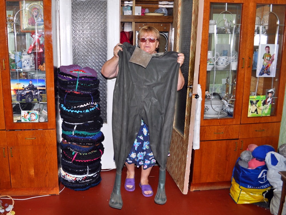 Записку від ЗСУ, яку скинув дрон в їхній човен, Людмила Дмитрівна не викинула. Коли вся сім’я нарешті опинилася разом, а літні жінки відійшли від стресу, Людмила Дмитрівна попросила доньку знайти їм якусь роботу, щоб бути корисними та робити щось, щоб віддячити українським військовим. Тож почали плести для них килимочки для сидіння, які жартома називають «піддупнички». Зв’язали їх майже тисячу штук. А ще почали купувати у секондхенді вовняні светри, які розпускають на пряжу і в’яжуть для українських військових теплі шкарпетки.
