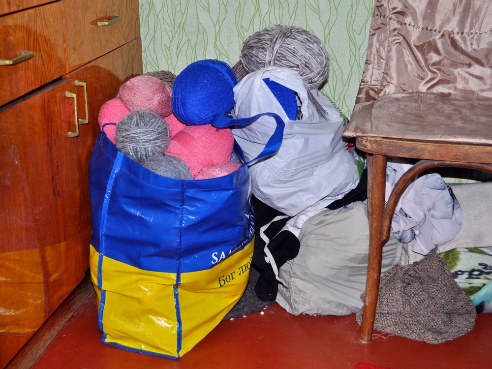 З цієї пряжі з-під рук Людмили Дмитрівни вийдуть теплі шкарпетки для українських бійців. Микола Келеберда