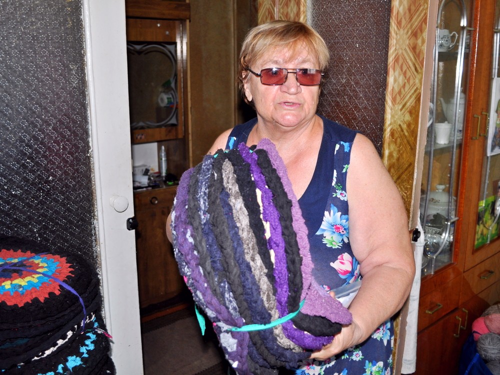 На знак подяки врятовані жінки зв’язали для українських військових майже тисячу килимочків для сидіння, які жартома називають «піддупнички». Микола Келеберда