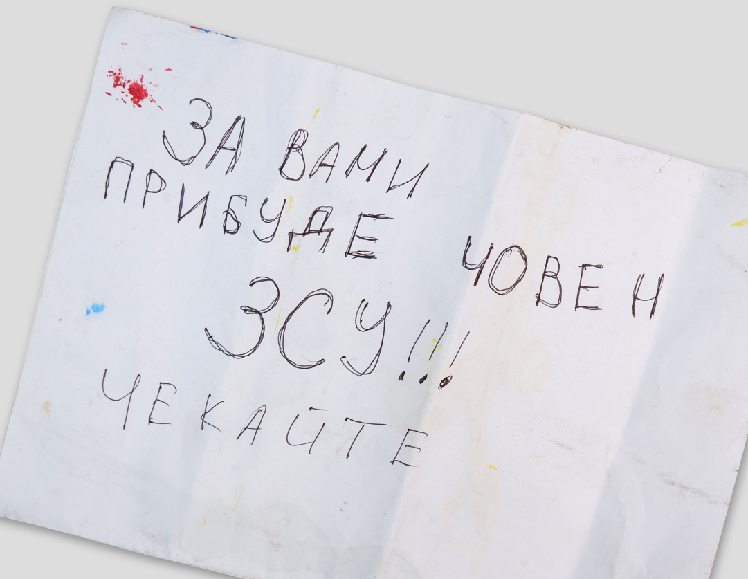 На клаптику паперу напис: «За вами прибуде човен ЗСУ!!! Чекайте».