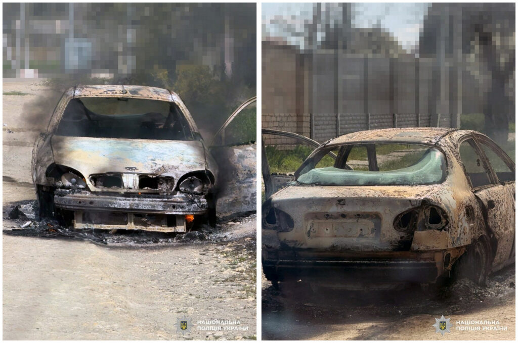 На знімках: пошкоджені автівки внаслідок російських ударів по Херсонщині. Фото: поліція Херсонської області