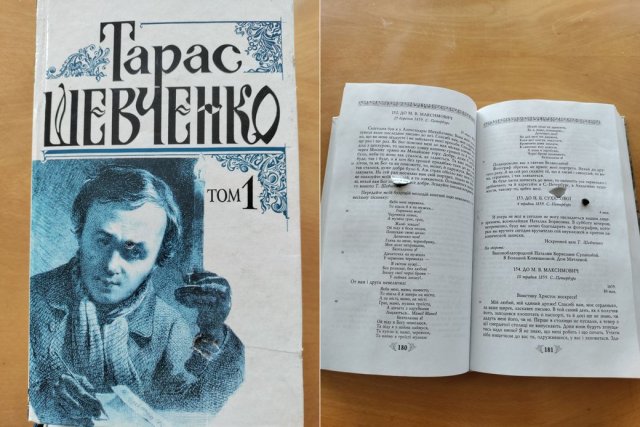 "Можете уявити, що вони тут по собі залишили: безлад, хаос. Але я глянула поперед себе, а на самому видному місці, як завжди в бібліотеці, знаходиться виставка Шевченка. Коли я підійшла ближче, то побачила, що перший і шостий томи нібито проколоті гострим предметом. А пізніше, коли ми вже їх розгортали, то побачили, що це вони прострелені кулями", — згадує Ірина.