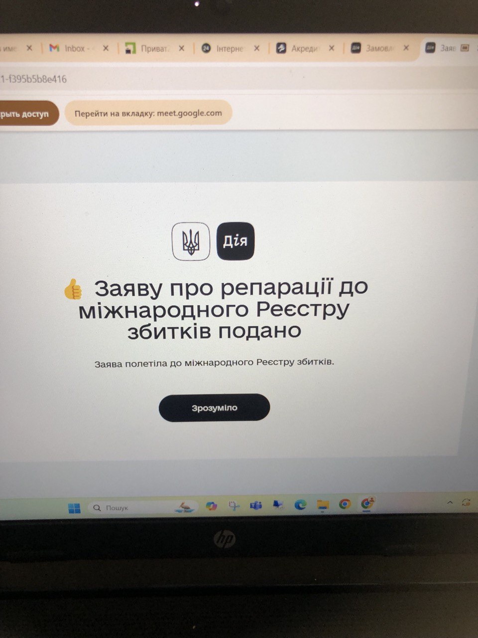 Подана заява має пройти перевірку Реєстру. У майбутньому її розгляне спеціальна комісія, яка призначить компенсацію.