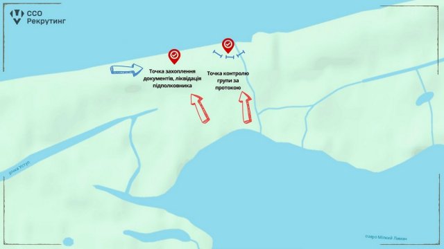 «Бійці Сил спеціальних операцій отримали в останніх числах вересня 2023 року завдання: десантуватисяз правого берега на острів, розвідати обстановку в районі ворожих позицій «Рубін», після чого відтягнутися до протоки, що тягнеться від озера до Дніпра, окопатися іне дозволити ворогу прорватися до «великої води», — розповідає Чех. —Водночас через цей плацдарм наша морська піхота мала заходити в район Кринок.