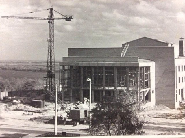 Іще раз дякуємо спільноті Старий Херсон, де можна знайти фото Херсона різних років, а відтак, поділитись спогадами. Саме там ми зібрали фото, які дозволять подивитись на палац від часу його будівництва.Це фото орієнтовно 1957 року, палацу ще немає.