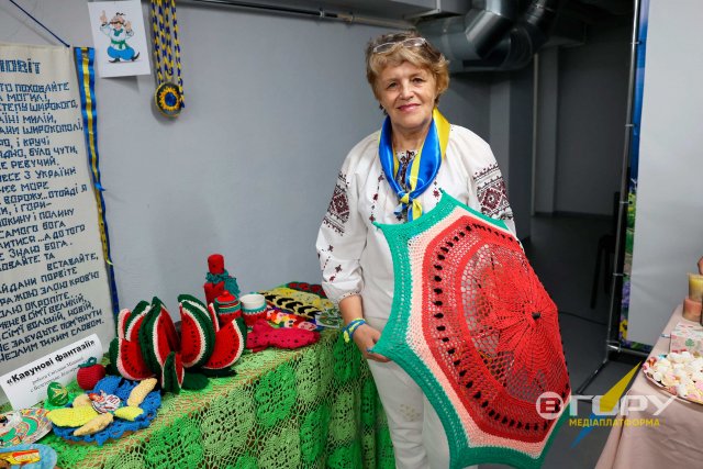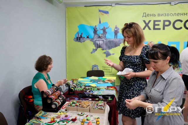 15 серпня в Херсоні відбулася виставка-ярмарок майстрів та майстринь, де люди могли придбати різні вироби.Фотокореспондент “Вгору” відвідав захід.Частину отриманих коштів від продажу перерахують на підтримку Збройних Сил України.Там можна було побачити, в'язані та вишиті роботи, прикраси, розмальовані тарілки, ляльки мотанки, вироби із бісеру та свічки. Дівчата шили іграшки, були розписані мушлі.