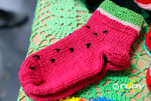 Також одна з майстринь в'яже шкарпетки для українських військових.