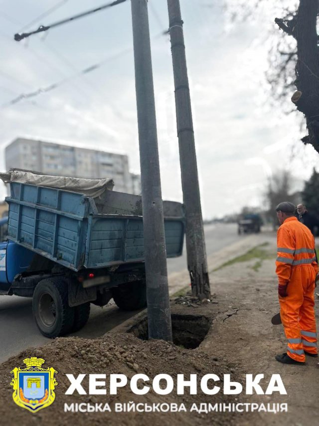 Працівники комунального підприємства "Херсонелектротранс" у максимально короткий термін замінили аварійні електроопори на нові.