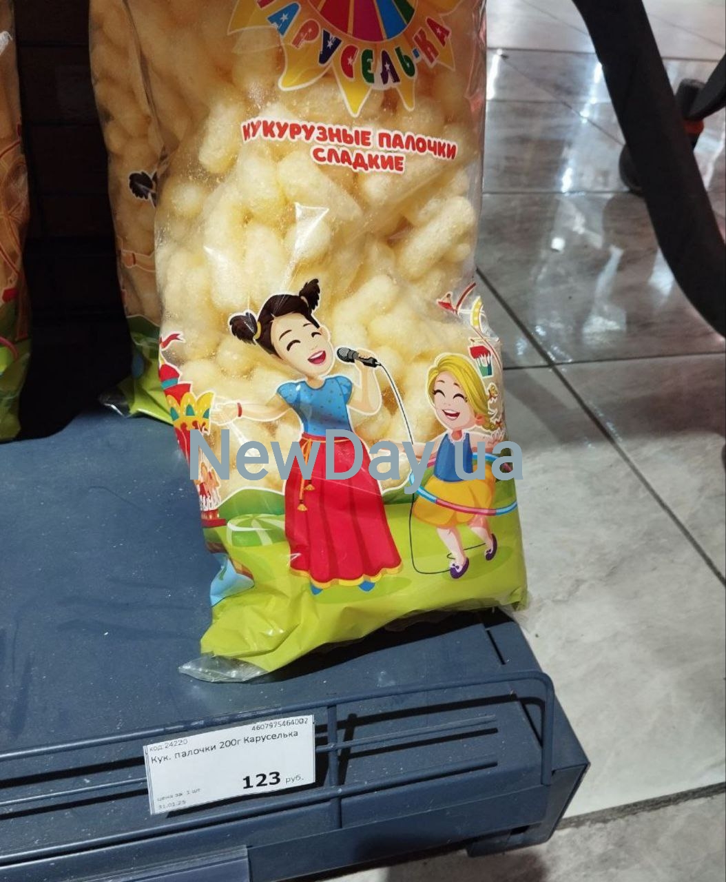 200 г кукурудзяних паличок, наприклад, там коштують 123 рублі.